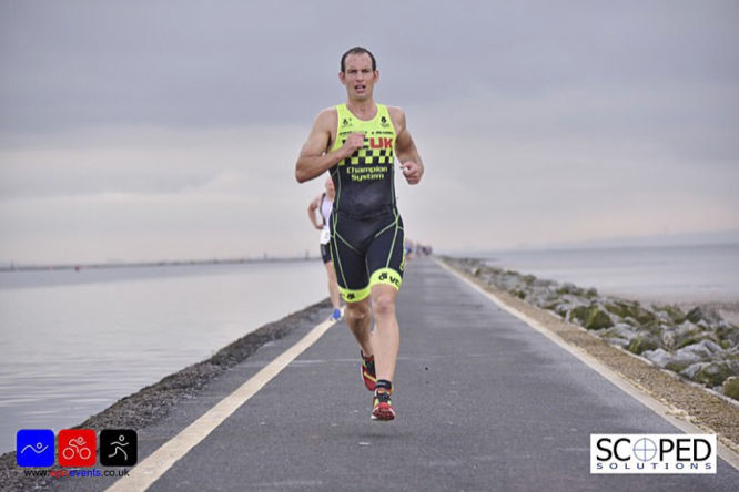 I really liked the course, it was quite technical and although the weather was dry I hadn’t recce’d the route and the road surface was damp making being slightly cautious a must. The legs felt good on the bike and I was soon into first position and happy that I was clear enough at the front to keep the effort under control enough to manage my ill stomach. Run Off the bike and I was welcomed by some great support lining the road, this is great and sets you off on the run on a high and able to forget about the usual off the bike jelly legs.